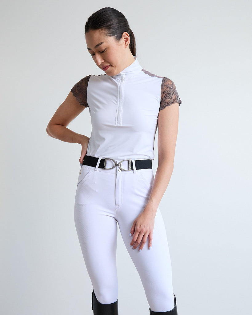 Lace Sleeve Show Shirt- White/ Marron Glace'