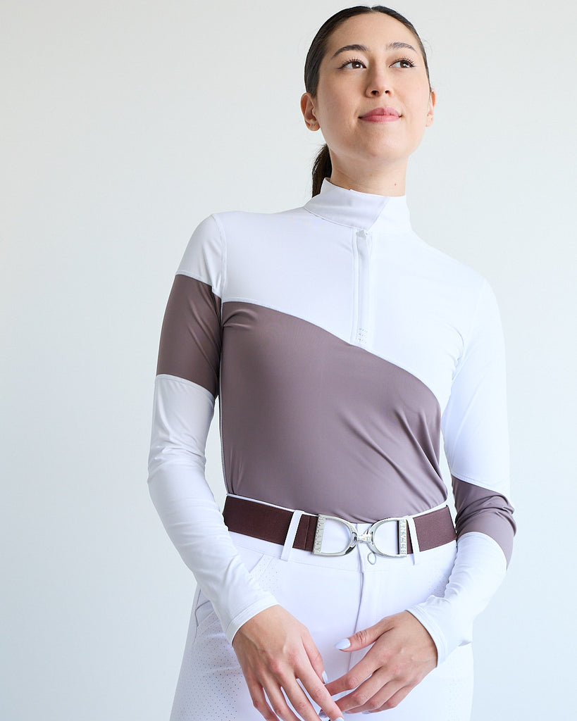 Long Sleeve Asymm Show Shirt - Safari/ White