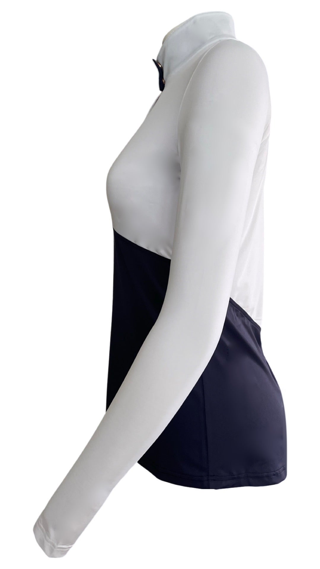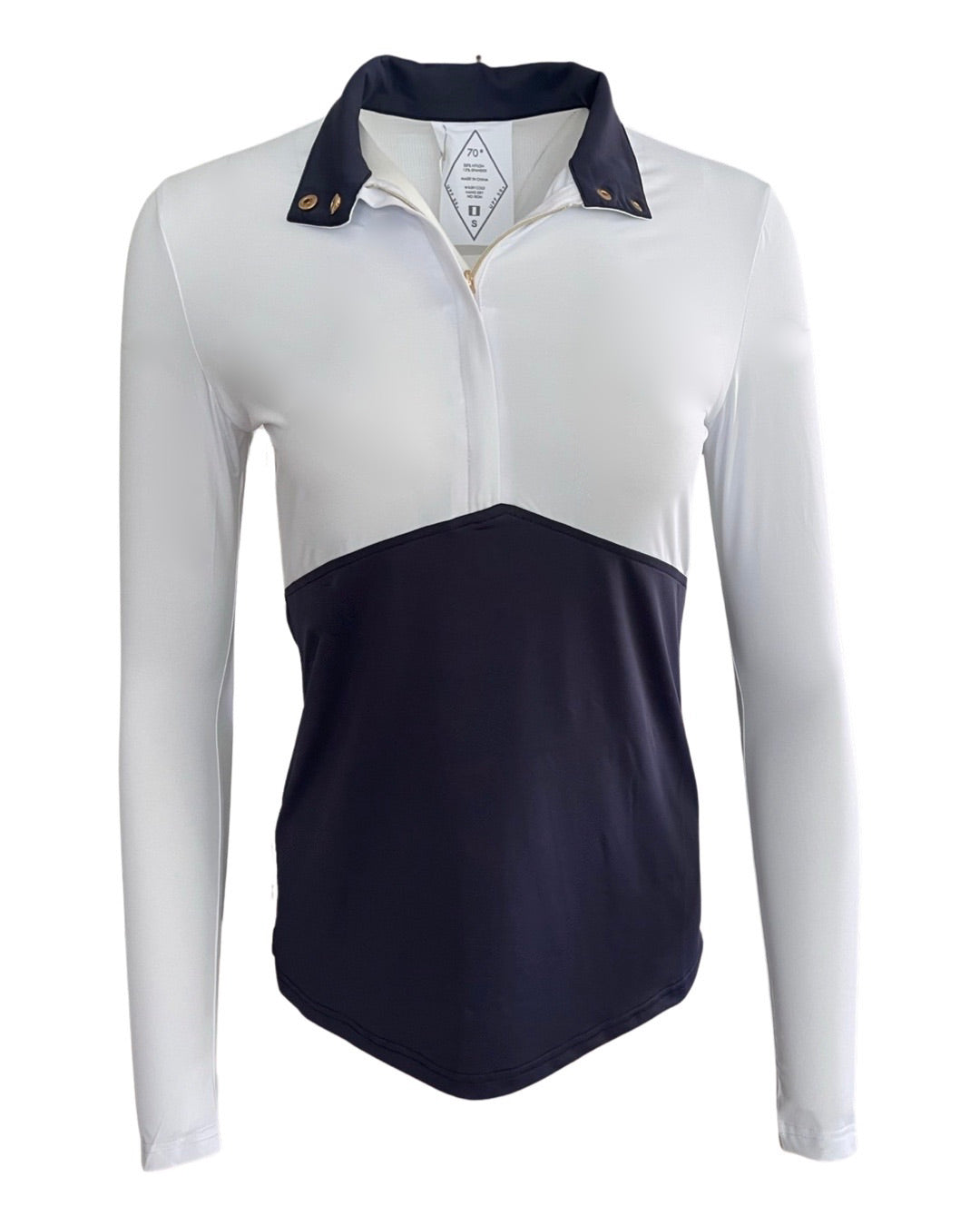 The Long Sleeve Chevron Block Show Shirt- White/ Navy: Back Ordered Until October 28