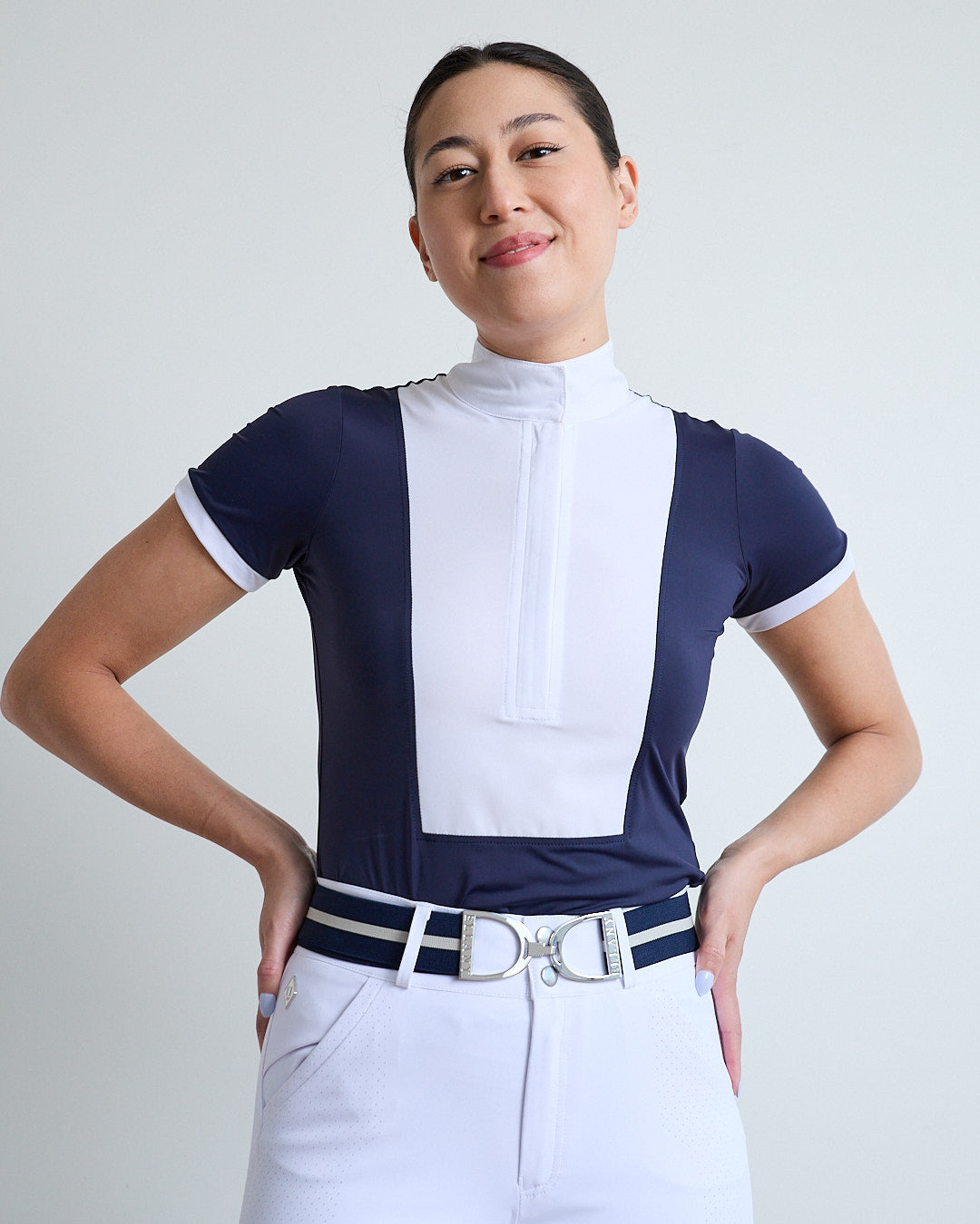 Short Sleeve Bib Show Shirt- Classic Navy / White